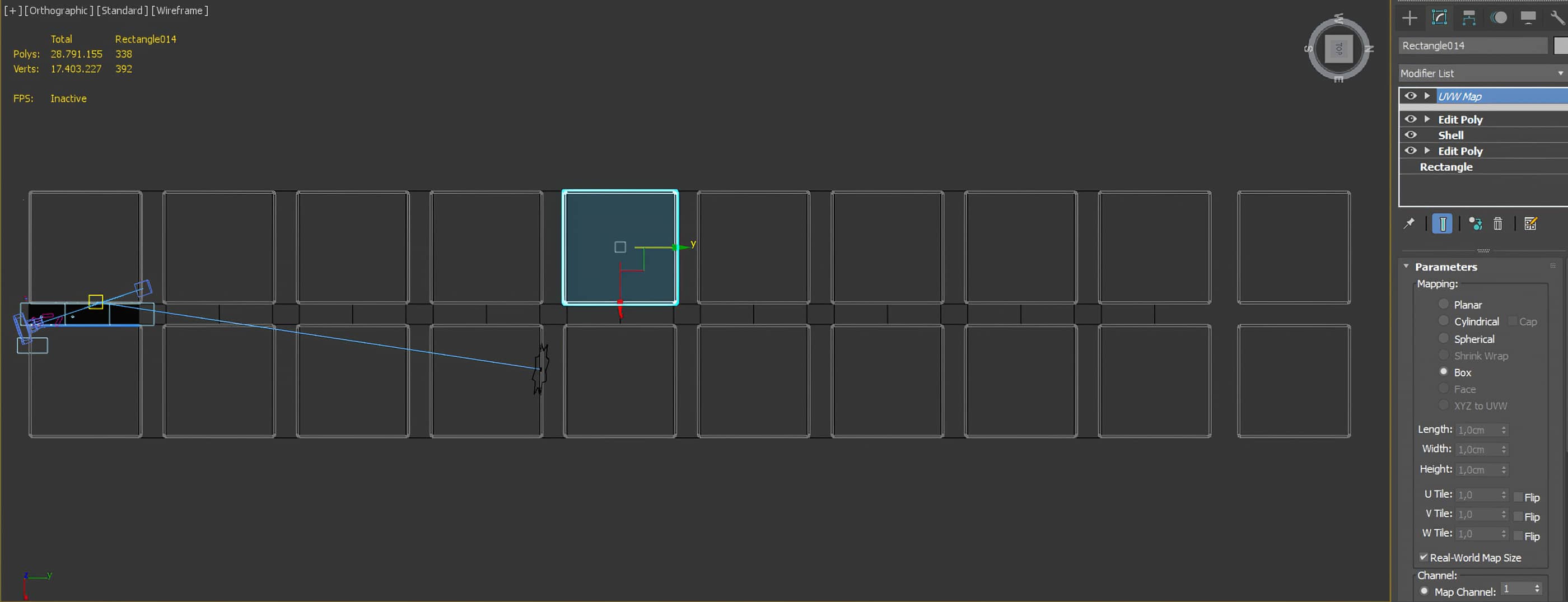 The main street was created from a simple rectangle with an Edit Poly modifier, so it could be copied and modified on each block.